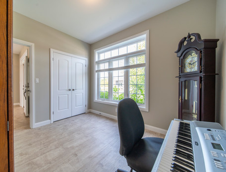 This space, much like the rest of the home, is bathed in natural light that flows in through the large windows. You'll likely find that window treatments aren't necessary here, thanks to the high level of privacy provided by having no rear neighbours. The second bedroom is currently being used as an office, but could certainly be converted back into a bedroom, a den, or a study, depending on your needs.